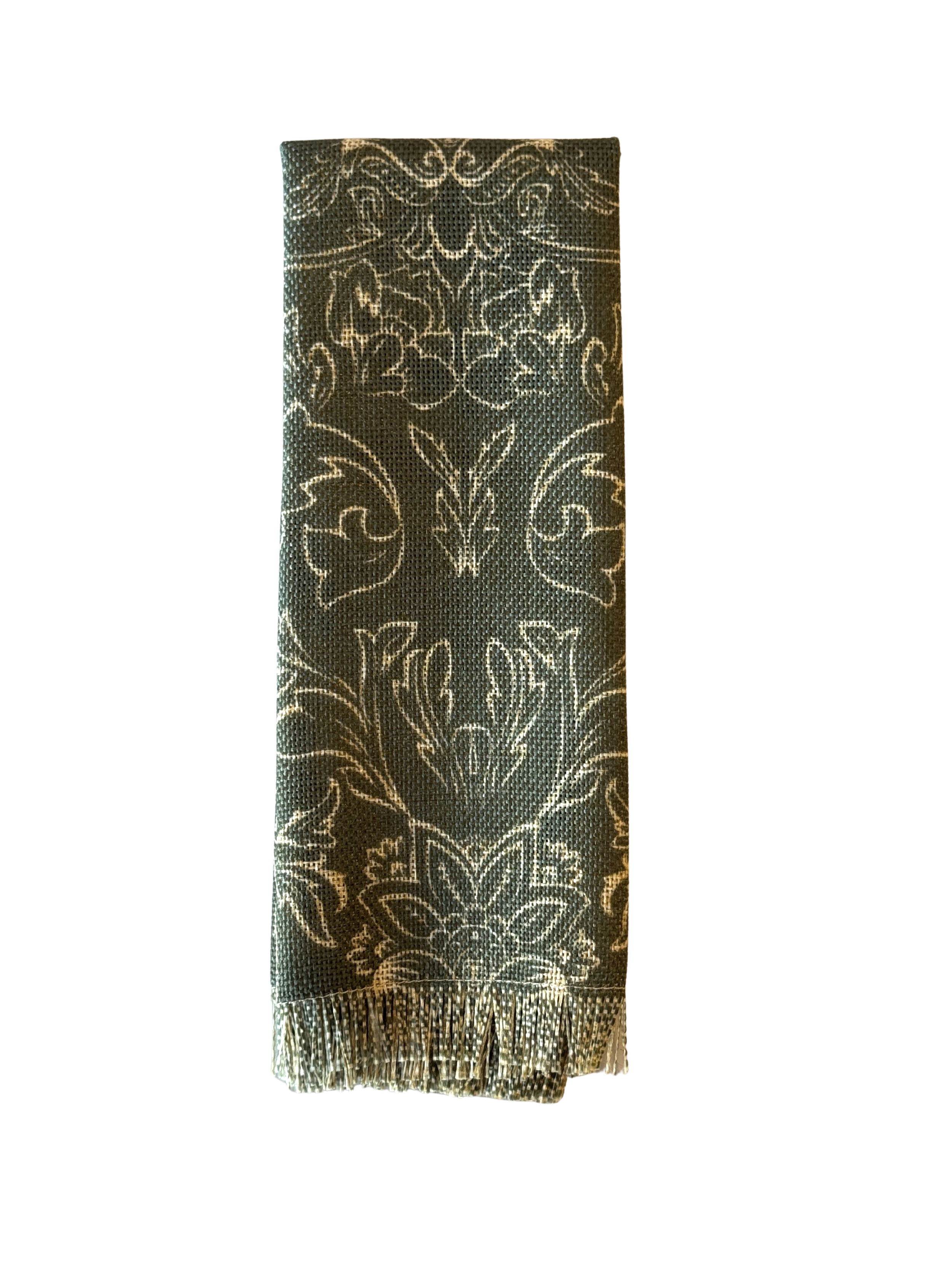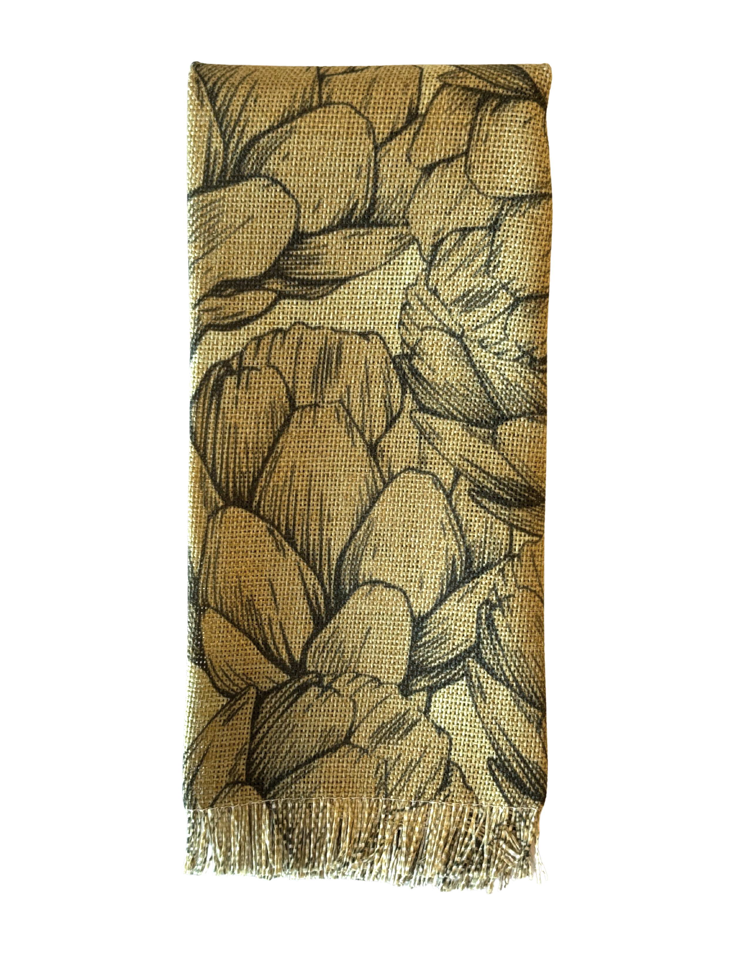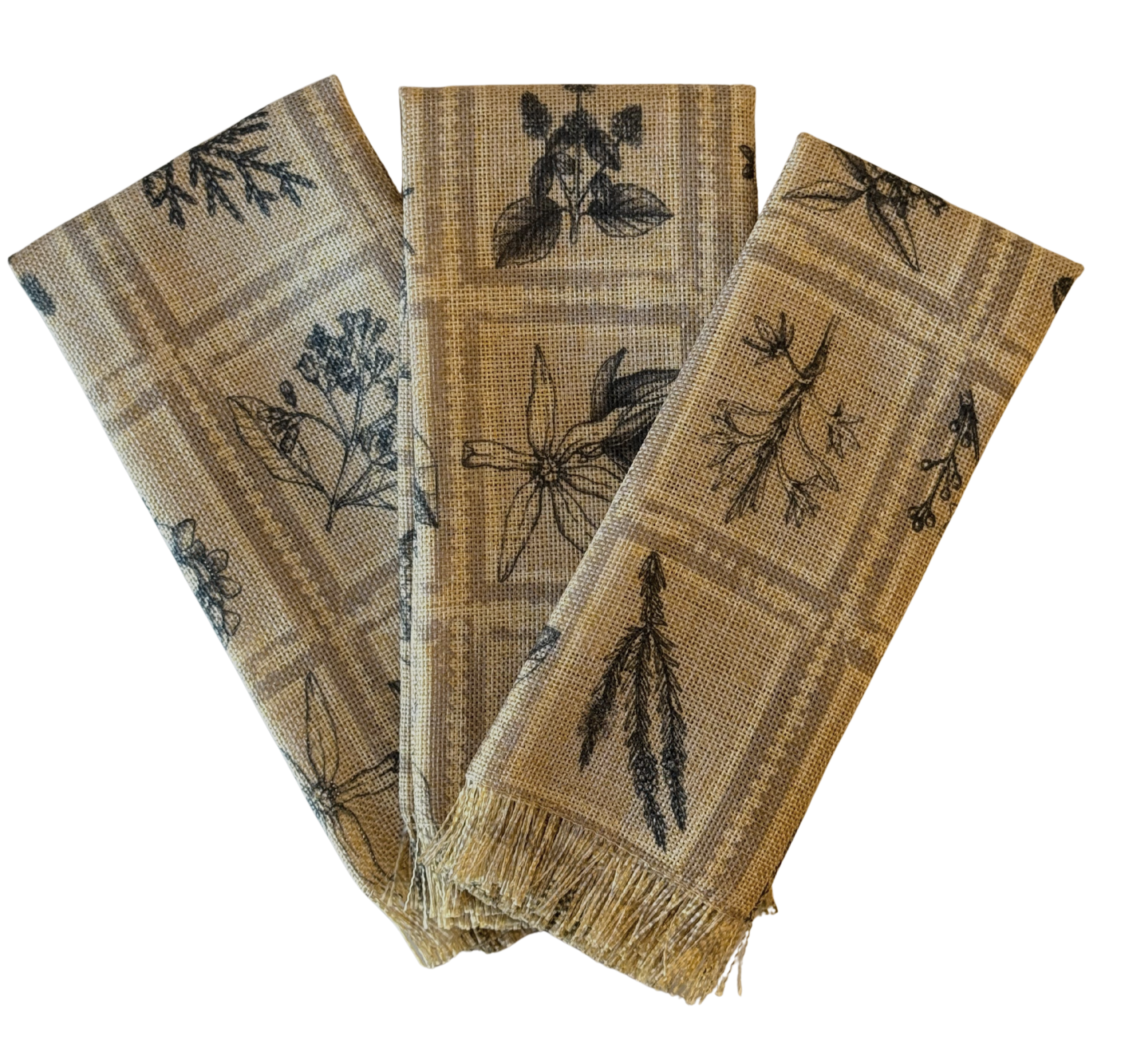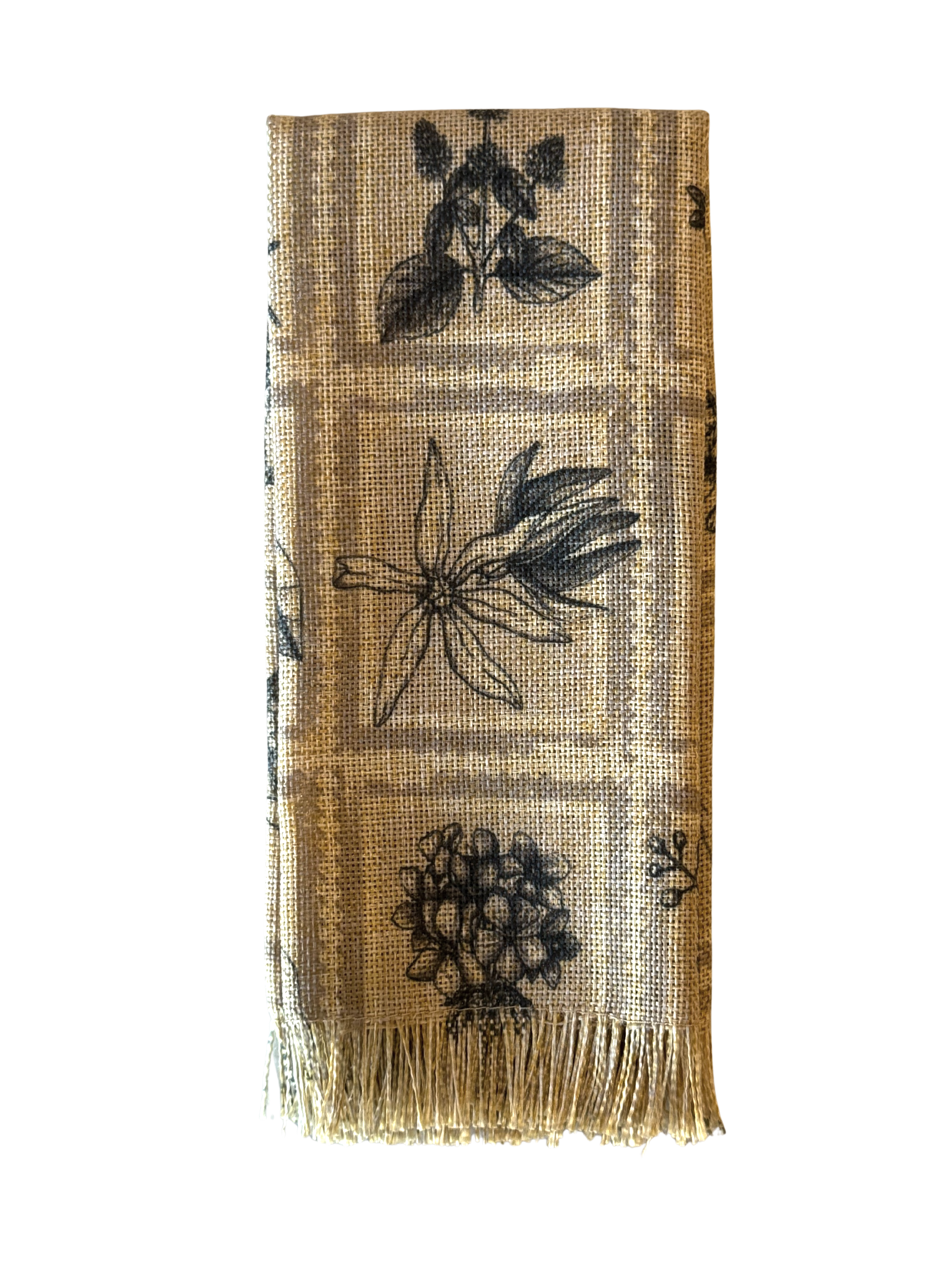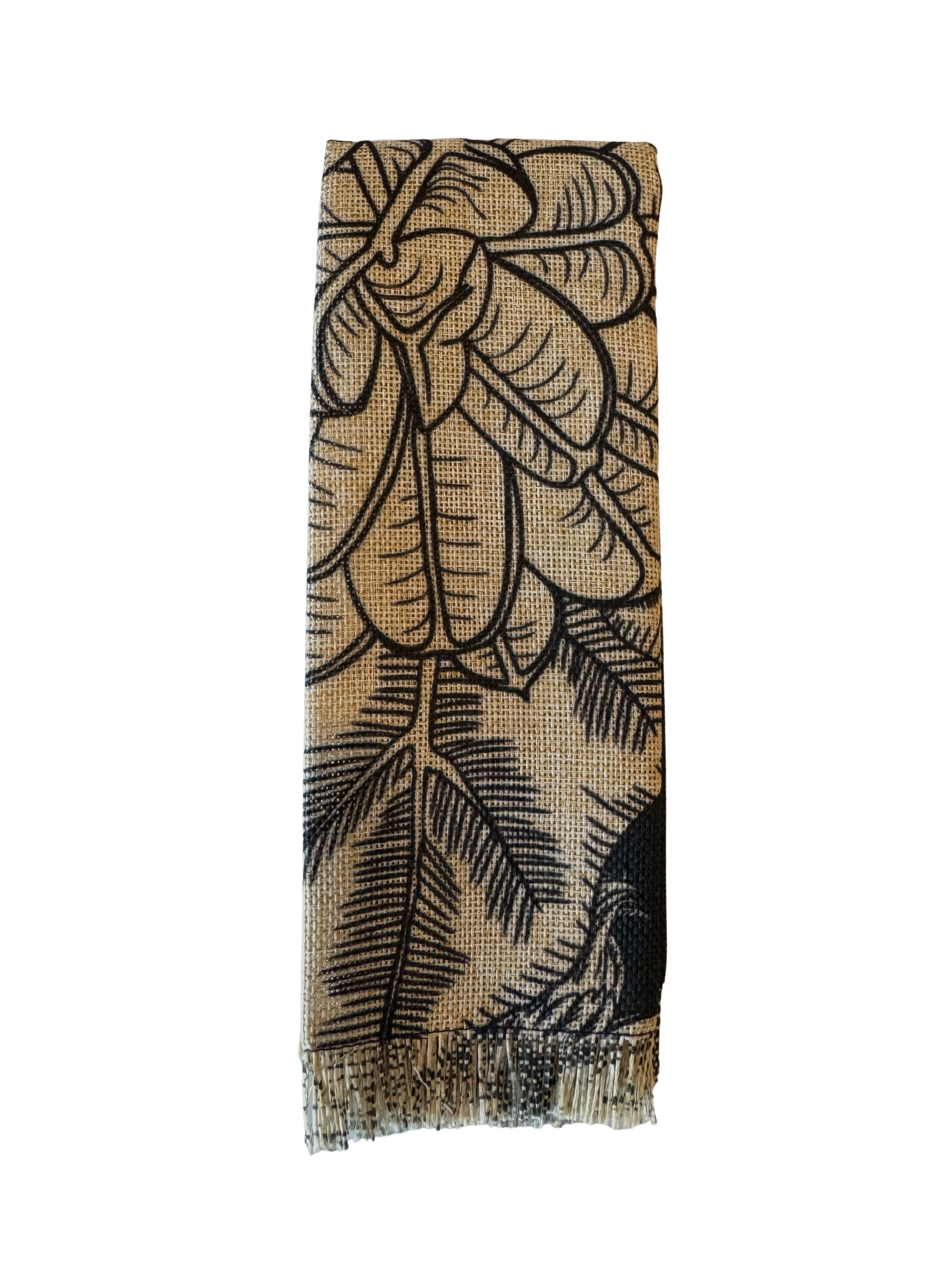 Add a touch of natural charm to your table with this handmade printed burlap napkins, featuring bold motifs . Crafted from jute and finished with a delicate fringe, each piece showcases the beauty of artisanal block printing.